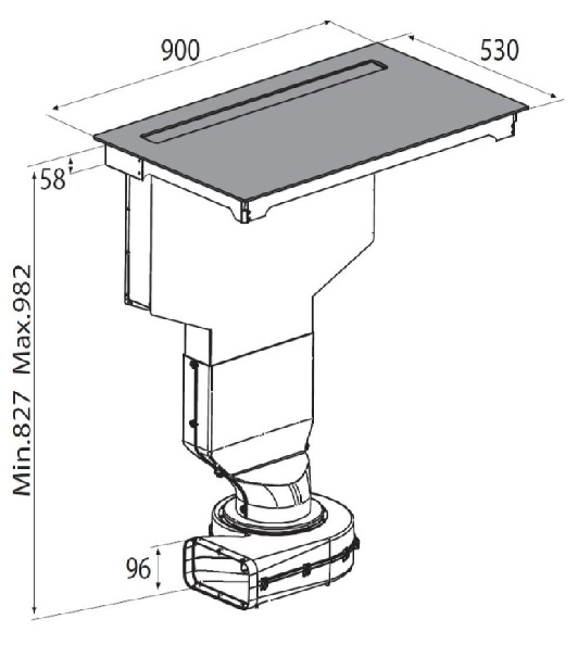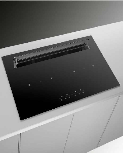 Páry vzniklé při vaření jsou automaticky odsávány štěrbinou umístěnou v zadní části varné desky. Ventilační jednotka je umístěna v soklu kuchyňské skříňky a odsávaný vzduch je odváděn ven plochým potrubím.