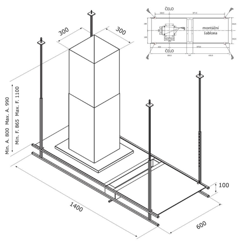 CATA Ostrůvkový odsavač par EMPIRE VIP OD 713040: Šířka 40 cm, max. sací výkon 822 m3/h a 3 rychlosti + TURBO. Ostrůvkový odsavač v nerezovém provedení s dotykovým ovládáním, dálkovým ovladačem a energe