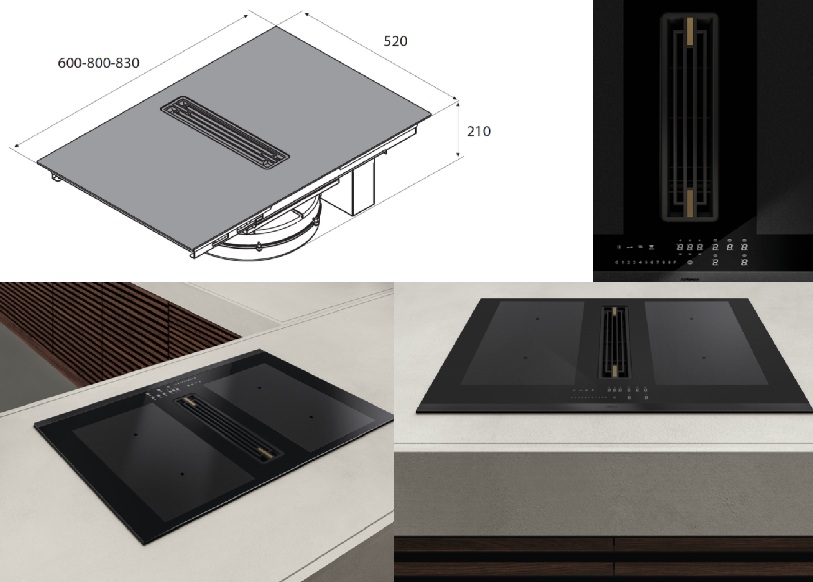 • Typ: Varná deska s integrovanou digestoří (Downdraft)