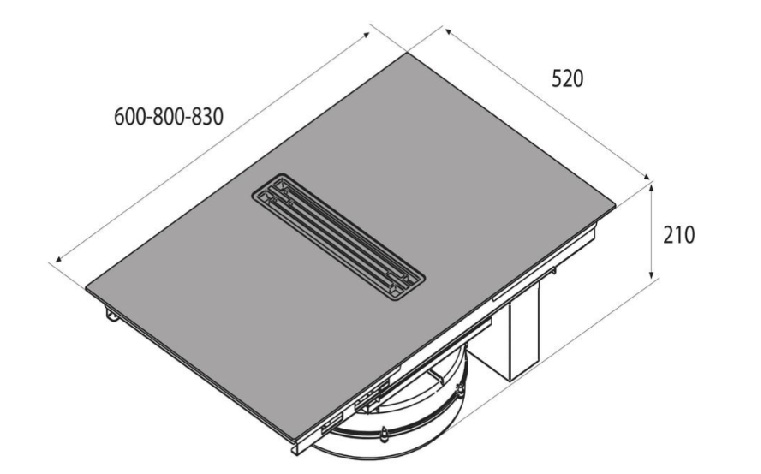 Vestavění: Varnou desku lze vestavět do standardní pracovní desky. Díky nízké výšce (pouze 210 mm) zůstane i po instalaci ve skříňce dostatek místa pro standardní zásuvky.