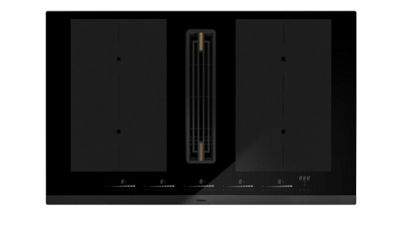 FRANKE Indukční varná deska s odsavačem par FMA 839 HI: Integrovaný systém Maris 2Gether v černém skle, šířka 83 cm. Má 4 indukční zóny se 2 Flexi zónami a odsavačem se sacím výkonem 700 m3/h. Ovládání je senzorové Slide, energetická třída odsavače j