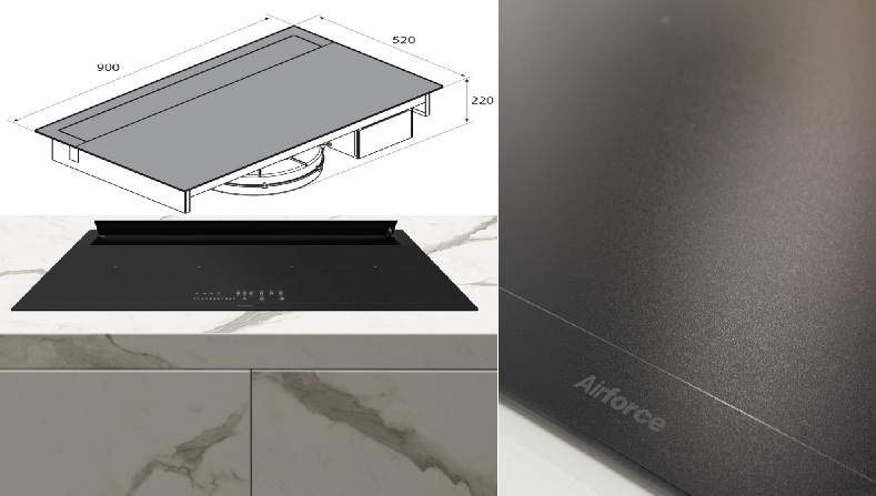FRANKE Indukční varná deska s odsavačem par FMA 839 HI: Integrovaný systém Maris 2Gether v černém skle, šířka 83 cm. Má 4 indukční zóny se 2 Flexi zónami a odsavačem se sacím výkonem 700 m3/h. Ovládání je senzorové Slide, energetická třída odsavače j