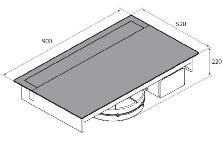 Vestavění: Varnou desku lze vestavět do standardní pracovní desky. Díky nízké výšce (pouze 220 mm) zůstane i po instalaci ve skříňce dostatek místa pro standardní zásuvky.