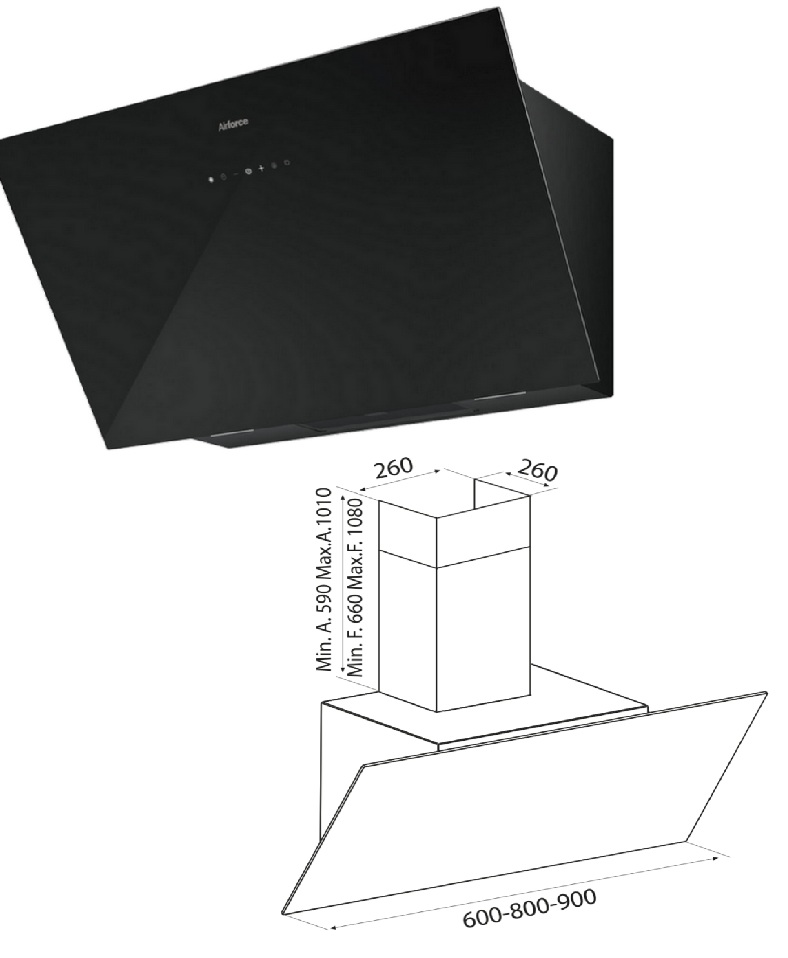 Komínová černá digestoř AIRFORCE OMEGA BL/A/80