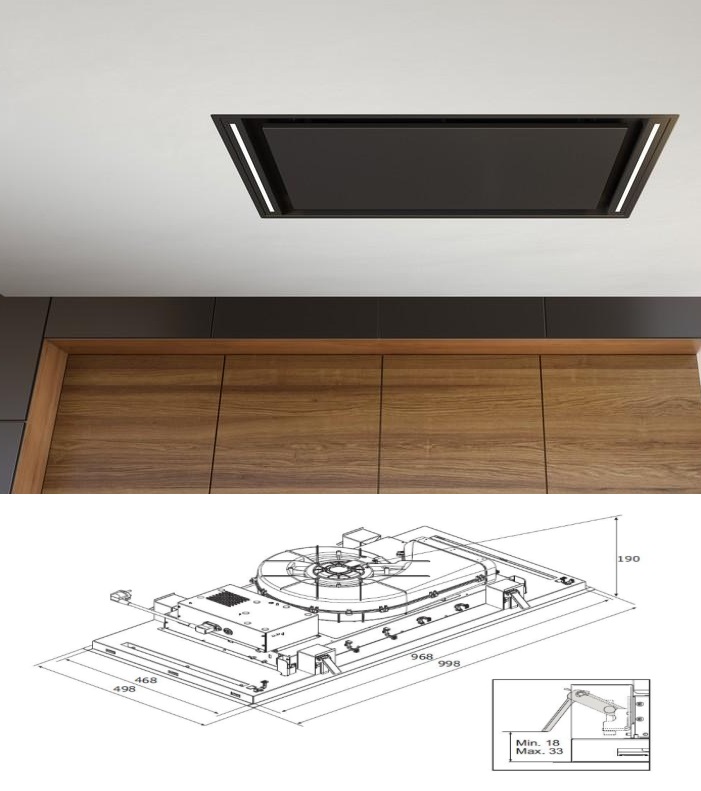 Airforce Silhouette TLC Flat 100 BK Luxusní stropní digestoř do podhledu – Elegantní a výkonný stropní odsavač par