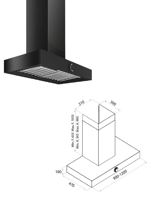 AirForce Vis Boxy AN/A/90 | Komínová designová digestoř, 90 cm, A++, černá antracit, ve tvaru T, 800 m3/h