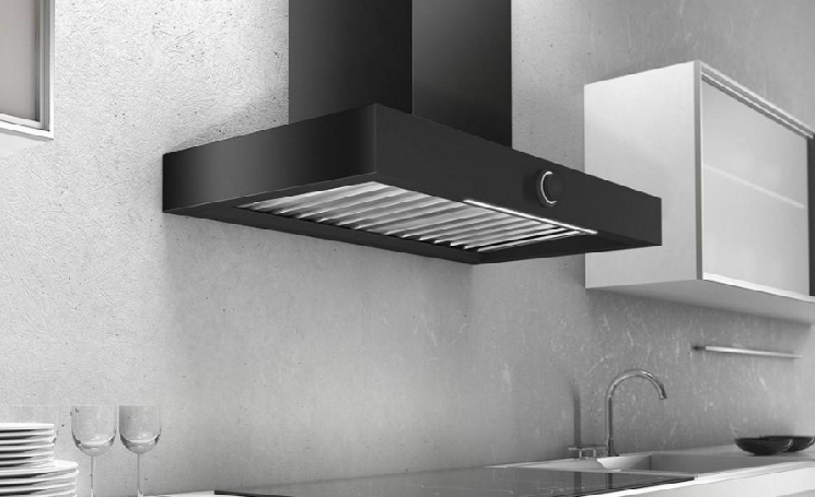 Praktický design – horní část digestoře lze využít jako odkládací prostor, vhodná pro moderní i industriální kuchyně.