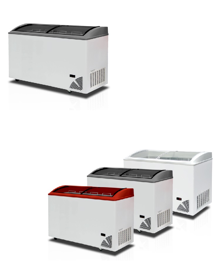 Prosklené mrazničky Byfal s oblým víkem umožňují lepší prezentaci produktů. Vyznačují se vynikajícími izolačními vlastnostmi. Vnější plášť je vyroben z pozinkovaného plechu, ten je z vnější strany potažen PVC, což jej činí odolnější proti korozi a poškrábání. Vnitřní stěny mrazničky jsou z Alu plechu o čistotě 99 % mimo dna, to je vyrobeno z ocelového plechu s povrchovou úpravou pro styk s potravinami. Vrchní krytí je z tvrzeného skla s termickou vrstvou,která zajistí lepší izolaci.Víko je opatřeno zámkem. Kompresor řídí digitální termostat s displejem, který znázorňuje aktuální teplotu. Ve standardní výbavě se nachází plný počet košů, do kterých je možno objednat dělící přepážky pro rozdělení mražených potravin.
