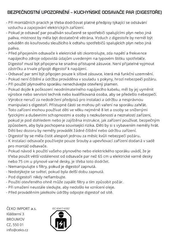 Kontaktní údaje výrobce v souladu s nařízením GPSR: CATA ELECTRODOMÉSTICOS SL, c/ Anabel Segura 11, Alcobendas, Madrid, Španělsko, info@cnagroup.es