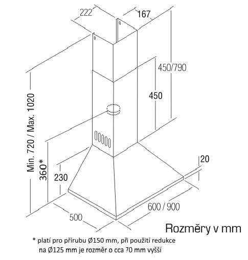 CATA Komínová digestoř 60 cm Beta VL3 600 | nerez, ke zdi, odtah i recirkulace + AKCE