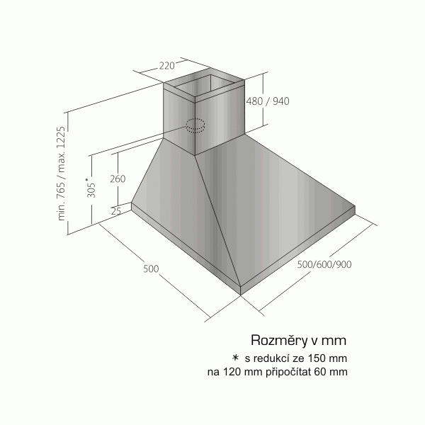 Min. výška nad plynovou deskou: 750mm