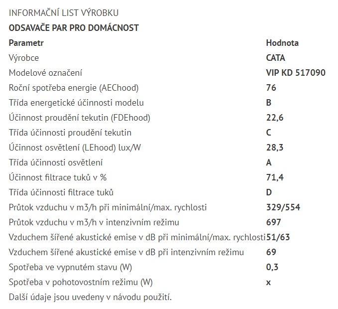 Kategorie digestoří CATA: