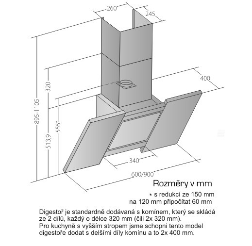 • Průměr odtahu: 150 mm, zdarma redukce 150/120 mm