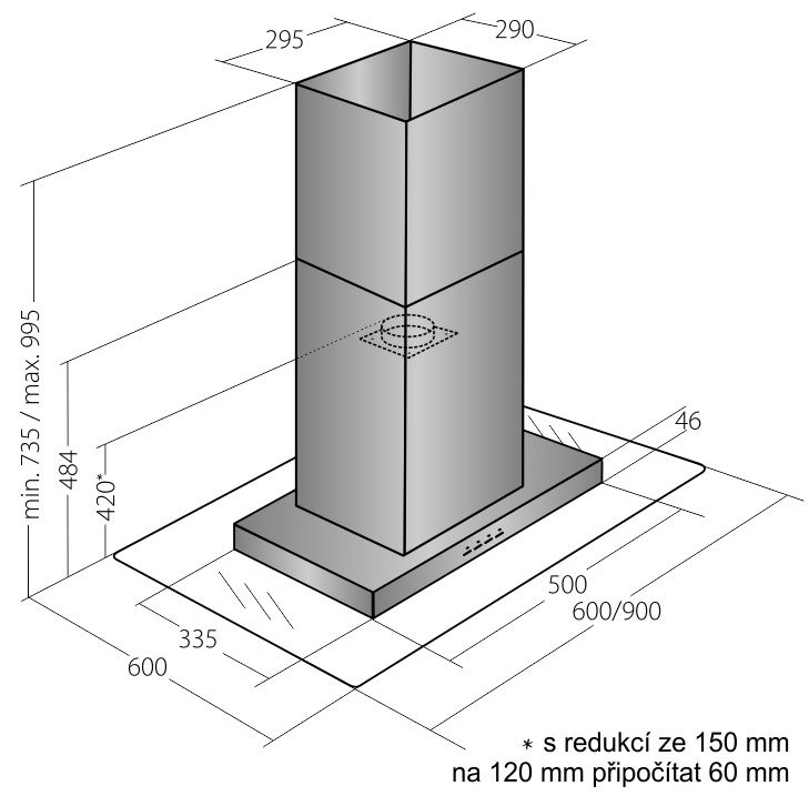 • Průměr odtahu: 150 mm, zdarma redukce 150/120 mm