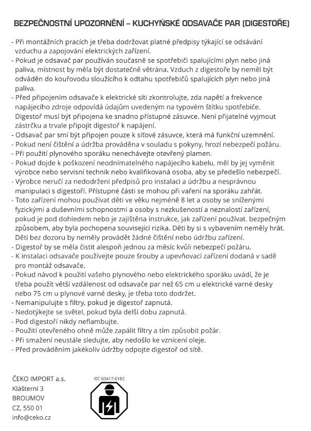 Kontaktní údaje výrobce v souladu s nařízením GPSR: CATA ELECTRODOMÉSTICOS SL, c/ Anabel Segura 11, Alcobendas, Madrid, Španělsko, info@cnagroup.es