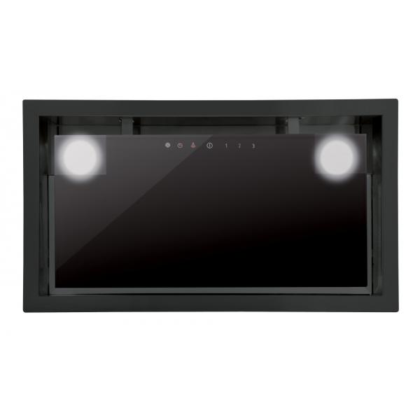 Neviditelná vestavná digestoř, 450 mm (pro 600 mm skříňku), nerez / černé sklo, přehledné a snadno přístupné dotykové (sensorové) ovládání na výklopném spodním panelu, 3 rychlosti, max. výkon 710 m³/h (5 Pa), hlučnost Lw 40 – 67 dB(A), max. tlak 450 Pa, 15 min. časovač, kovové sendvičové tukové filtry, které lze mýt v myčce, výstupní průměr 150 mm, možnost práce v odtahovém i recirkulačním režimu, snadná montáž, Výbava: úsporné LED osvětlení 2 × 4 W s nastavitelnou intenzitou jasu.