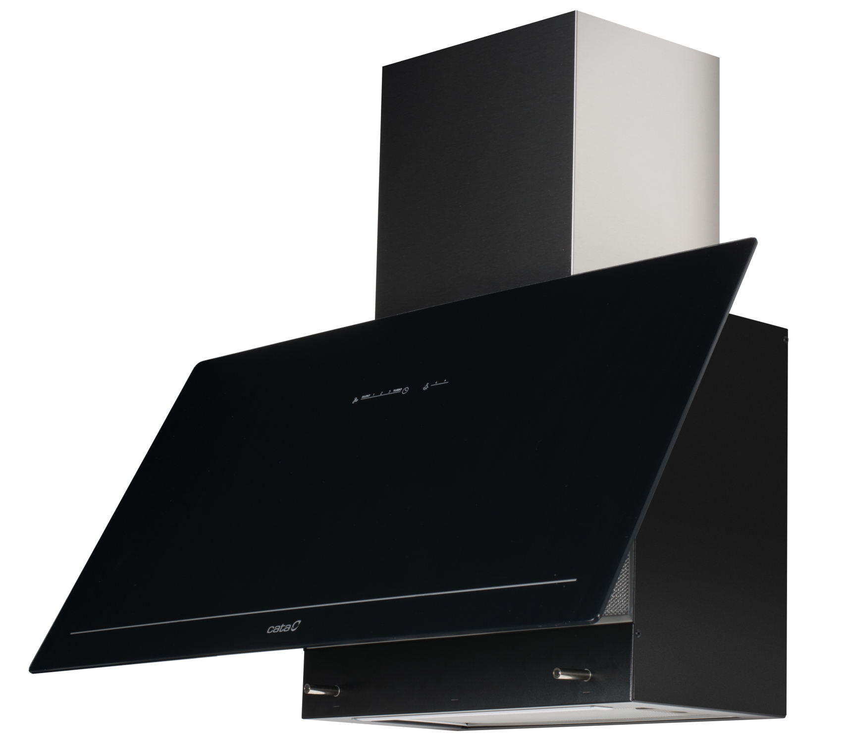 Cata Goya 700 Černá – Komínová šikmá digestoř 70 cm, nerez černé sklo, 820 m3/h – záruka 66 měsíců