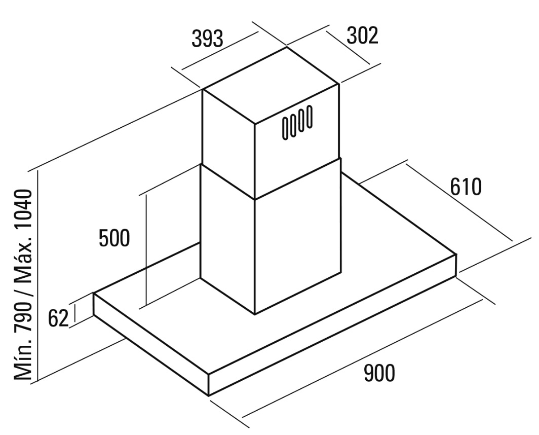 CATA Ostrůvkový odsavač par EMPIRE VIP OD 713040: Šířka 40 cm, max. sací výkon 822 m3/h a 3 rychlosti + TURBO. Ostrůvkový odsavač v nerezovém provedení s dotykovým ovládáním, dálkovým ovladačem a energe