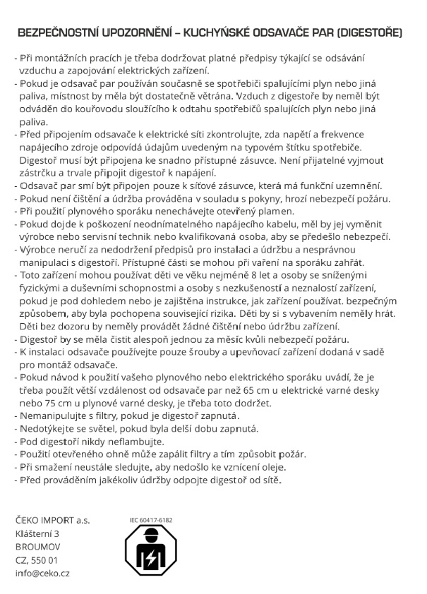 Kontaktní údaje výrobce v souladu s nařízením GPSR: CATA ELECTRODOMÉSTICOS SL, c/ Anabel Segura 11, Alcobendas, Madrid, Španělsko, info@cnagroup.es