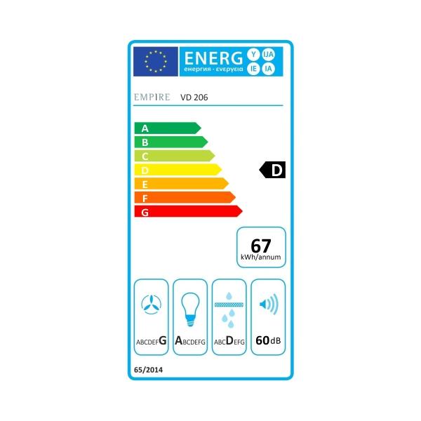 Vestavná výsuvná digestoř s bezkartáčovým motorem: šíře 600 mm, nerez lišta, 1 motor T1DC 90 W, 5 rychlostí + TURBO, 575 m3/h (5 Pa), max. tlak 300 Pa, max. hlučnost Lw 63 dB.