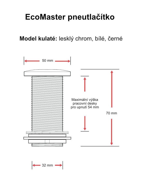 • Materiál tlačítka: Pochromovaný plast (krytka), šroubení a matice plast