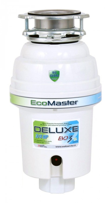 EcoMaster ECONOMY EVO3 Drtič kuchyňského odpadu je ideální pro běžně domácnosti o 3-4 osobách, a tam, kde je nedostatek místa pod dřezem. Všechny drticí komponenty jsou z nerezové oceli, má dostatečný výkon a odhlučnění motoru.