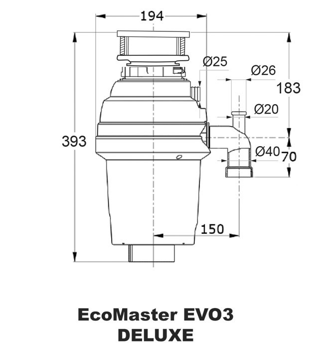 EcoMaster ECONOMY EVO3 Drtič kuchyňského odpadu je ideální pro malé domácnosti o 2–3 osobách, dále vhodný pro místa, kde je nestandardní, případně omezený prostor pro montáž. Kvalitní nerezová ocel. Překrytí motoru.