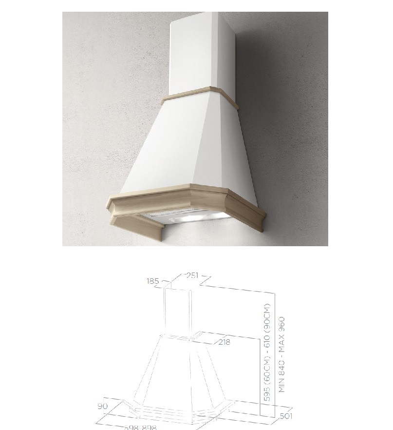 Cata EMPIRE KD 303090 je Digestoř rustikální 90 cm. Retro komínový odsavač par Cata EMPIRE KD 303090 v bílém provedení.