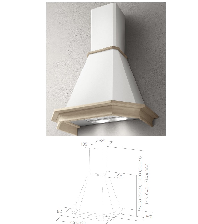 ELICA EMERALD WH/A/90 Komínový odsavač par - Nový rustikální komínový odsavač par s dekorativními prvky z přírodního dřeva