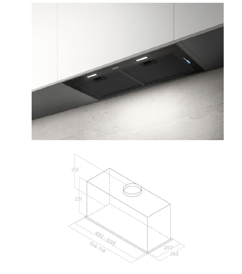 ELICA FOLD BL MAT/A/72 Vestavný odsavač par - Nový vestavný odsavač par s matným černým designem a tichým provozem