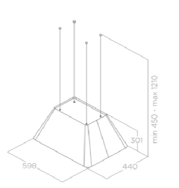 CATA Ostrůvkový odsavač par EMPIRE VIP OD 713040: Šířka 40 cm, max. sací výkon 822 m3/h a 3 rychlosti + TURBO. Ostrůvkový odsavač v nerezovém provedení s dotykovým ovládáním, dálkovým ovladačem a energe