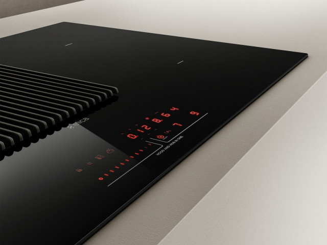 Faber GALILEO SLIM F60: Indukční deska s integrovanou digestoří (pouze recirkulace). Šířka 60 cm, en. třída A+, výkon 630 m3/h. S voděodolným motorem, Bridge Zone, snadným přístupem k filtrům a dotykovým ovládáním. Ideální pro moderní kuchyně.