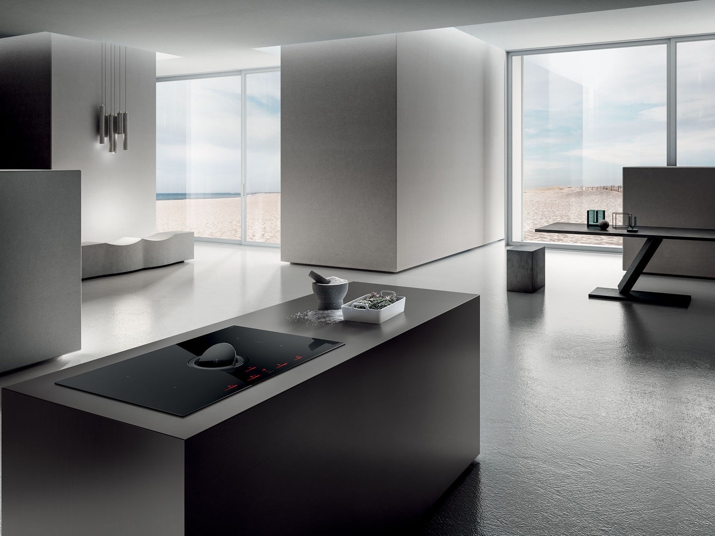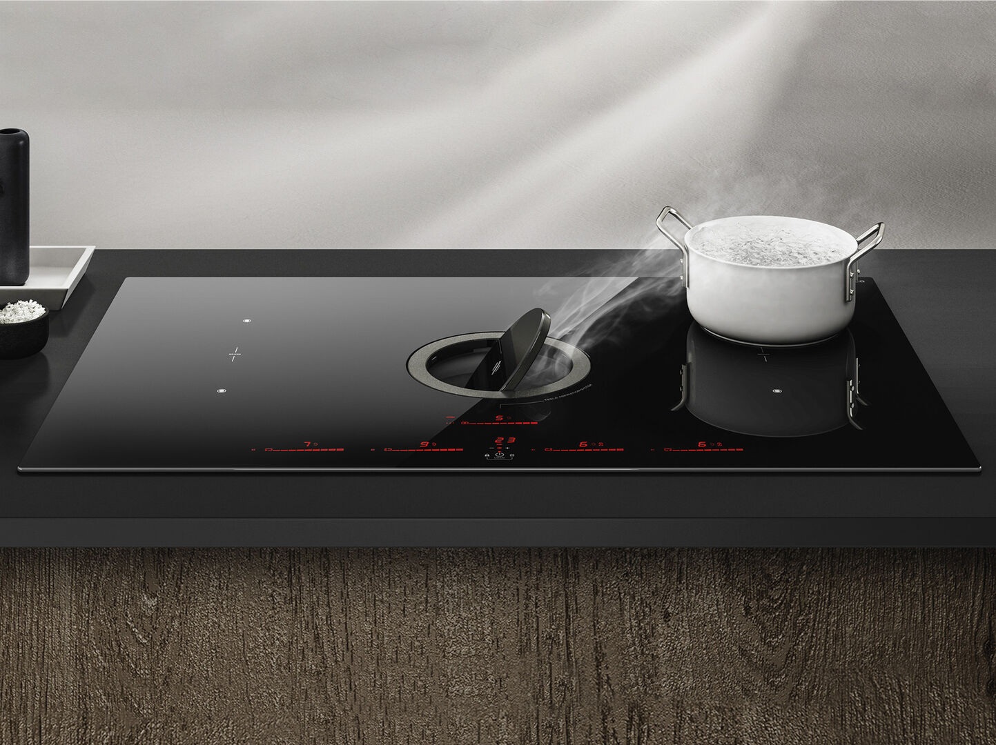 • Moderní kuchyně: Ideální pro ostrovní i klasické instalace, kde integrovaný odsavač nahrazuje běžnou digestoř.
