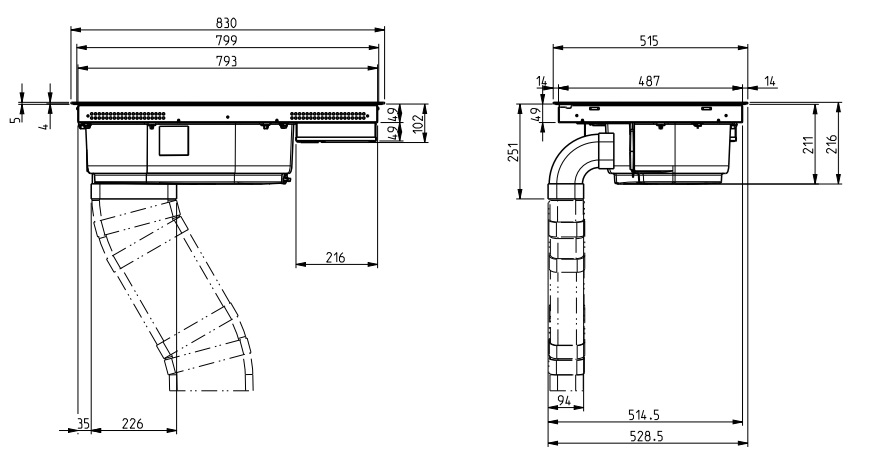 • Průměr odtahu: 220 x 90 mm