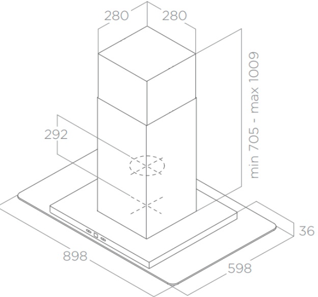 Cata Empire VIP OD 710090 | Ostrůvková digestoř ve tvaru T 90 cm Nerez Sklo, 736 m3/hod, 51 dB, 71009050