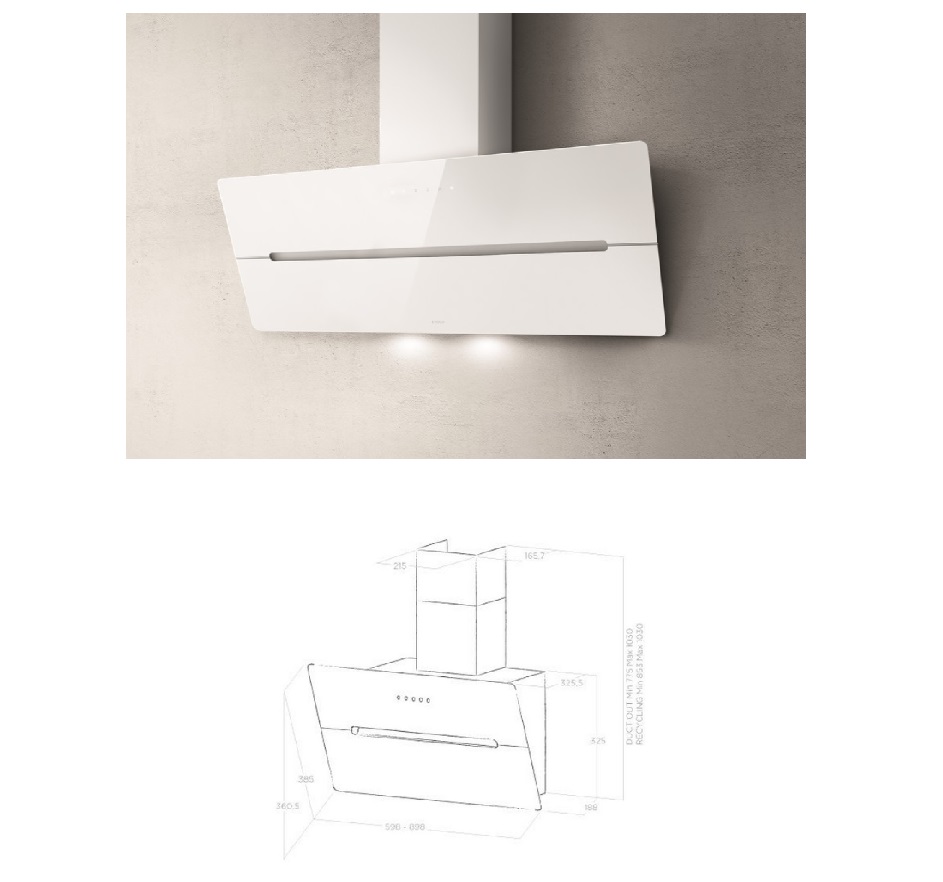ELICA WISE WH/A/90 Komínový odsavač par - Nový komínový odsavač par s vysokým výkonem a bílým sklem