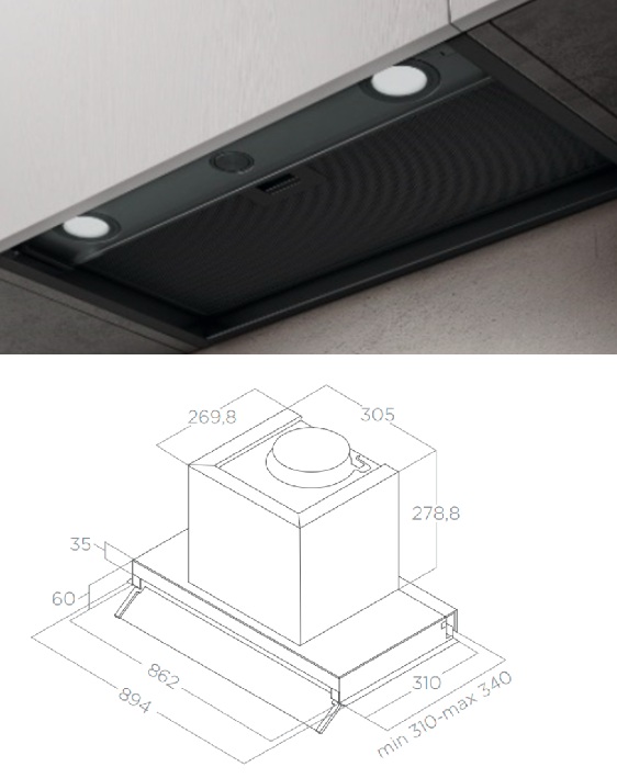 Ellica Box in LX/BL MAT/A/90 | Vestavná digestoř do skříňky 90 cm Černá, 620 m3/hod, 50 dB, PRF0172167