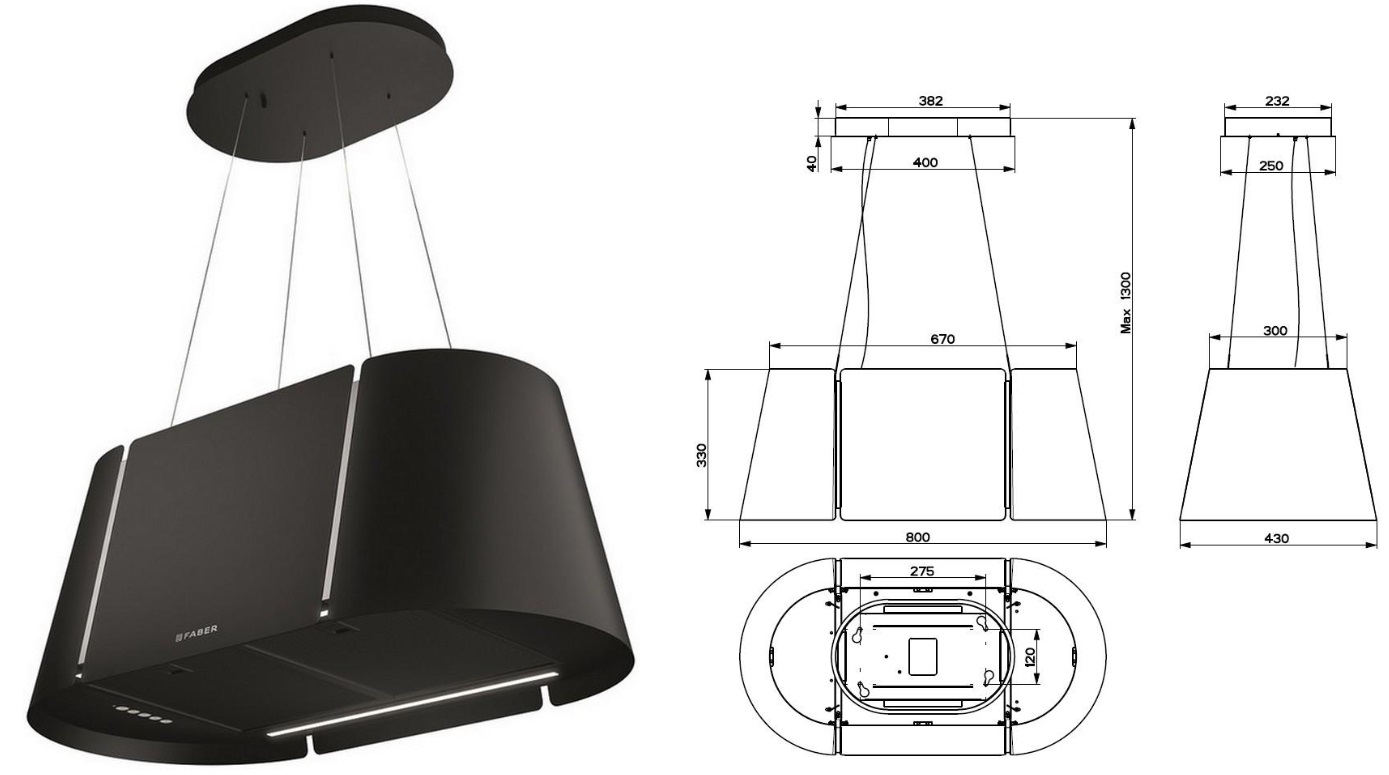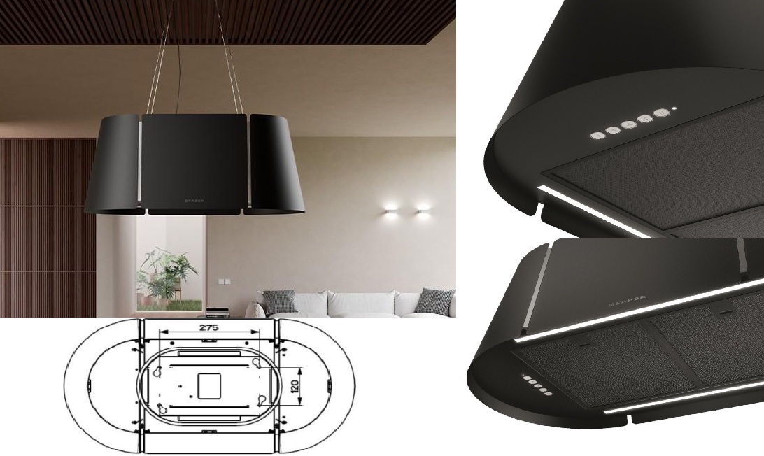 Černá lustrová digestoř nad ostrůvek Faber Beat BK MATT F45 za akční cenu s dopravou zdarma. Autorizovaný obchod Faber, záruka 5 let a servis po celé ČR, odborné poradenství.