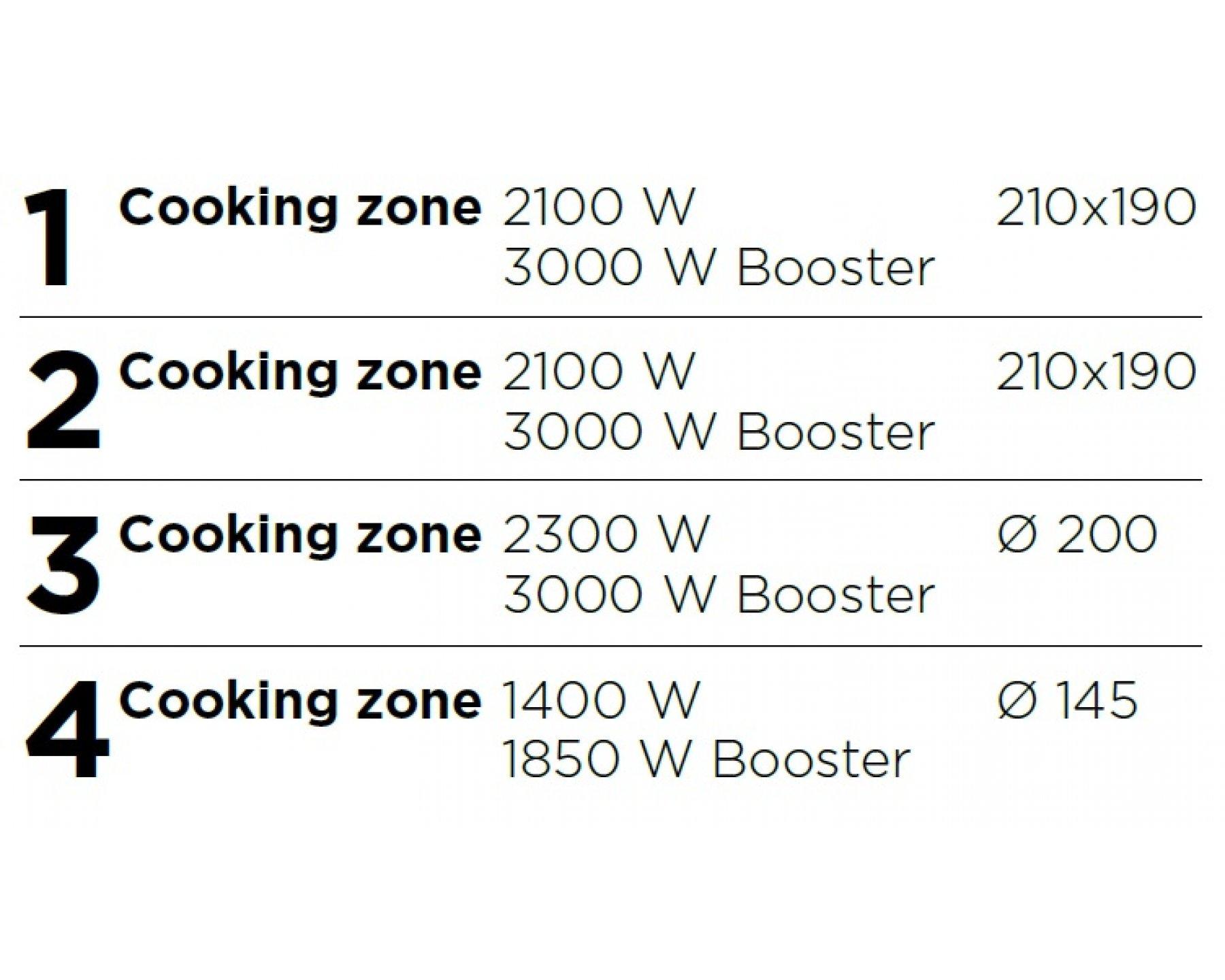 CATA GIGA 600 BK Indukční varná deska 60 cm AKCE se 4 zónami, které lze spojit do jediné giga zóny 40 cm. Má Booster pro každou zónu, časovač, 9 stupňů výkonu a 3 programy (rozmrazování, ohřev, vaření).