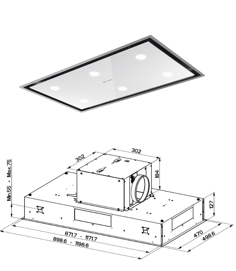 Faber HEAVEN BRIGHT G/WH KL A90 Stropní digestoř do podhledu