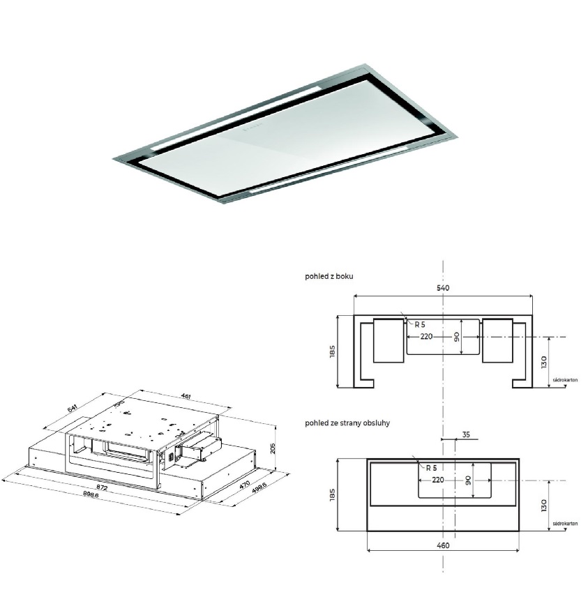 Faber HEAVEN LIGHT PRO G/WH FLAT KL A90 Stopní digestoř do podhledu – Stylový a výkonný stropní odsavač par