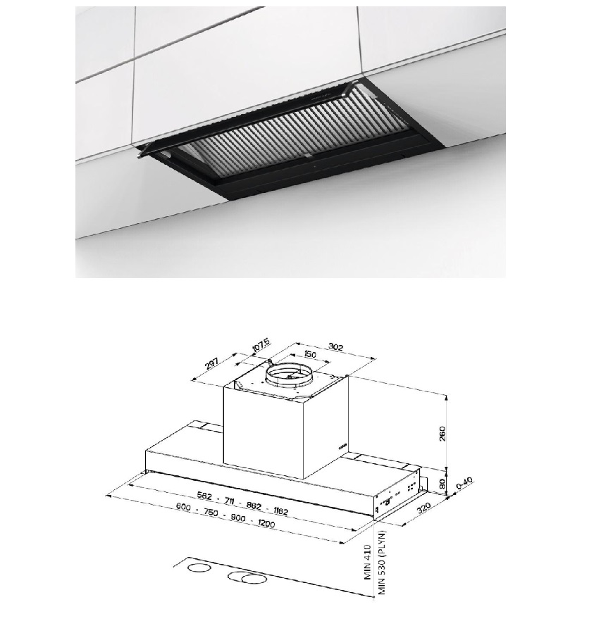 Faber In-Nova Zero Drip Lite BK A60 | Vestavná digestoř do skříňky, 60 cm, černá