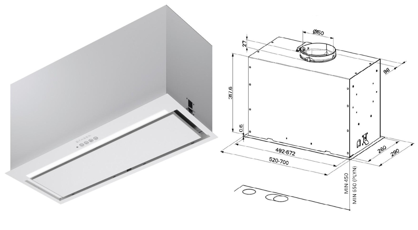 Lze ji také propojit s externím motorem na fasádu MISTRAL. V těchto případech jsou technické parametry digestoře shodné s parametry vybrané externí ventilační jednotky.