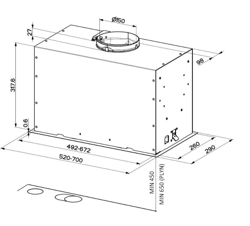 Lze ji také propojit s externím motorem na fasádu MISTRAL. V těchto případech jsou technické parametry digestoře shodné s parametry vybrané externí ventilační jednotky.