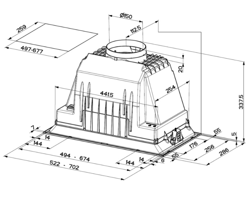 TEKA GFG 2 X: Celozástavná digestoř z nerezové oceli, šířka 60 cm. Energetická třída D, dvojitý turbínový motor, 3 rychlosti a tlačítkové ovládání.