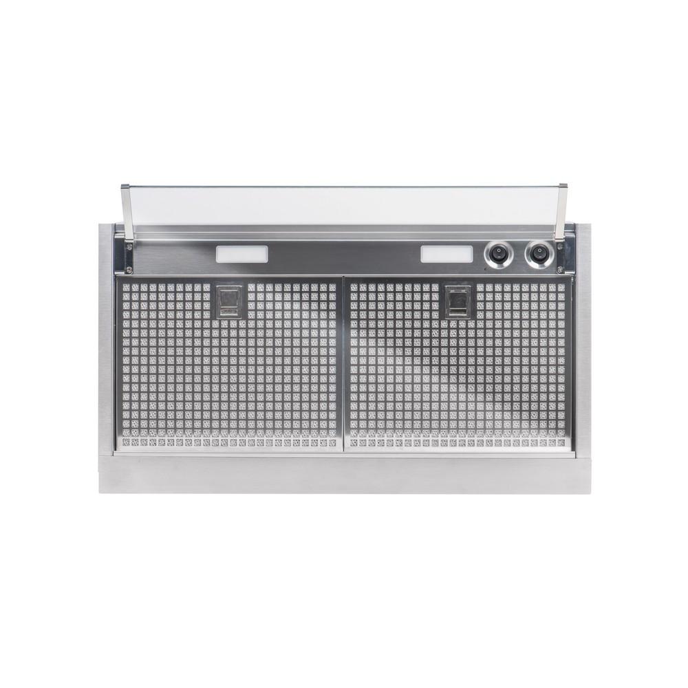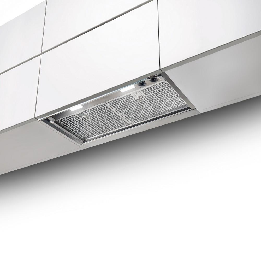 Je vyrobena z kvalitní nerezové oceli, její součástí je výklopný skleněný štítek, který podporuje zachycení par a chrání dolní hranu dvířek skříňky. Ve skříňce zabere jen velmi málo místa.