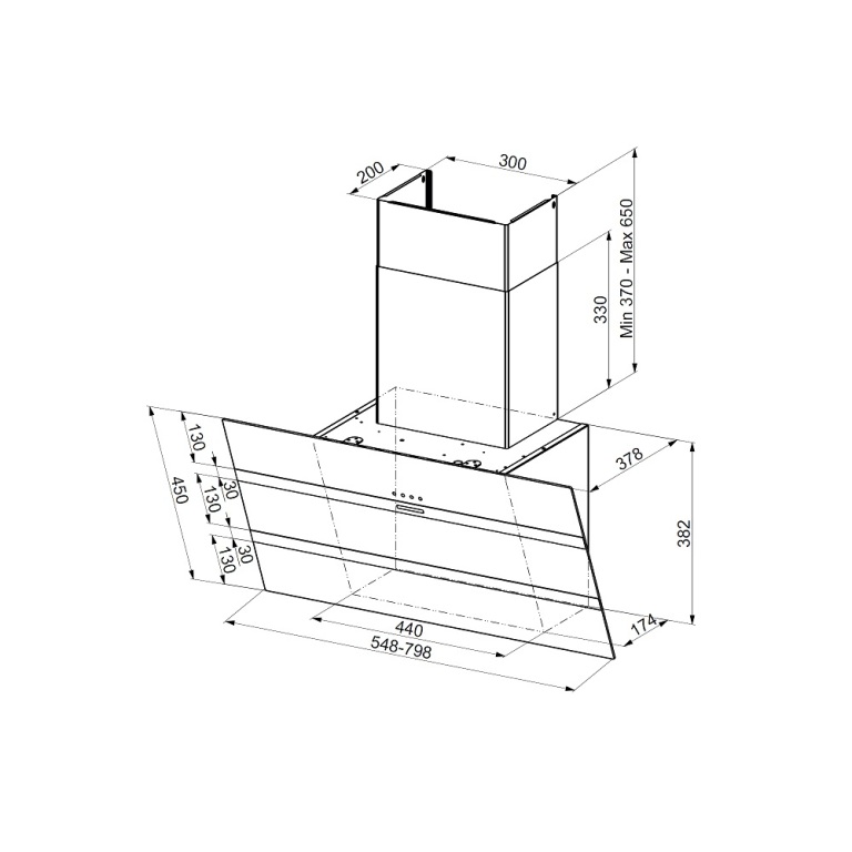 Faber Daisy Plus BK A80 | Komínová šikmá digestoř, 80 cm, černé sklo nerez