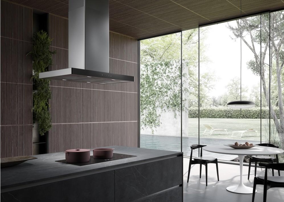 CATA Odsavač par LEGEND 9000: Tichý a výkonný odsavač s moderním designem, šířkou 90 cm, nerezem a černým sklem. Bezkartáčový motor zajišťuje sací výkon 639 m3/h a nízkou spotřebu. Nabízí 9 rychlostí, dotykové ovládání a úsporné LED osvětlení. Tukové