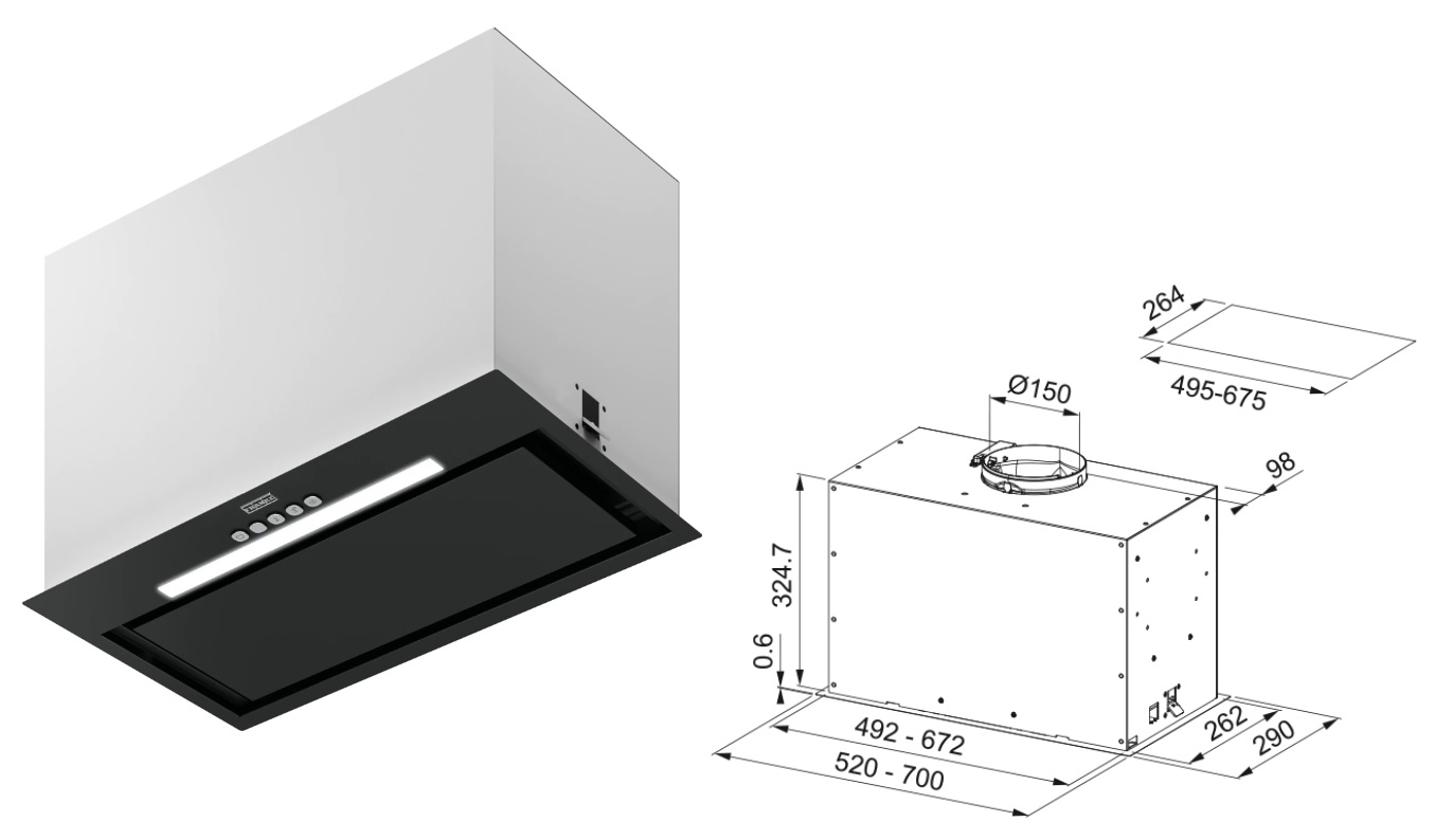 Franke FBFE BK MATT A52 Box Flush Evo - Vestavná digestoř do skříňky, 52 cm, černá matná, 620 m3/h, 305.0665.364