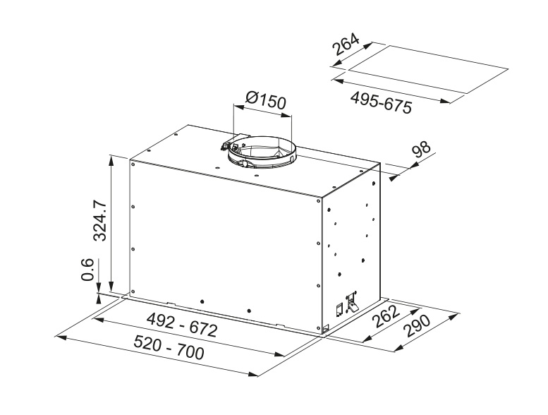 • Průměr vyústění odtahu: 150 mm
